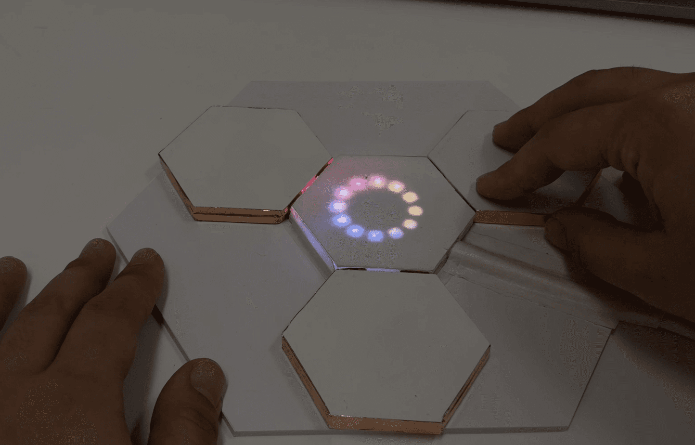 A flower that physically reacts to light by changing petal position and core illumination.